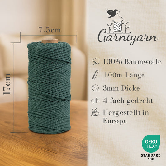 Garniyarn Macrame cord Bundle 3 mm Premium 100% Cotton Set of 1 bobbin x 200m Natural /100m Terracotta /100m Sage Green