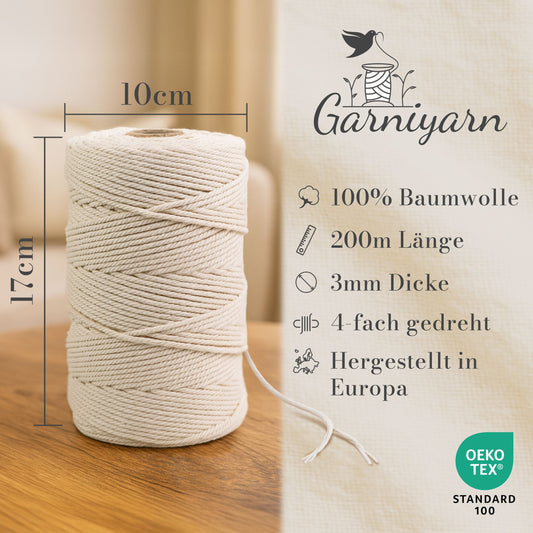 Garniyarn 100% Cotton Premium Macrame Cord / 200m / Natural