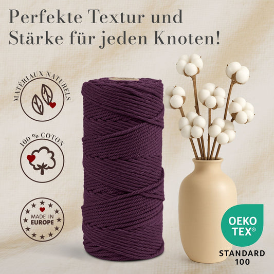 Macrame cord 3 mm Premium 100% Cotton , 100m Blackberry Burgundy