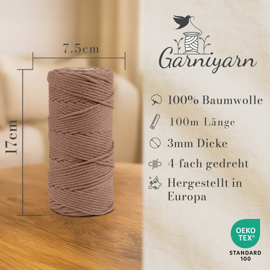 Macrame cord 3 mm Premium 100% Cotton , 100m Mocha Mousse